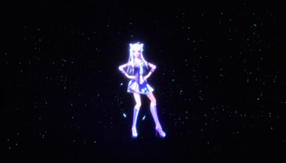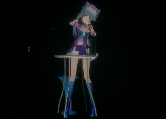 在发布会现场,该美少女以全息成像方式演唱了一首二次元风格的《魔法咏唱》,并配以各种舞蹈动作。