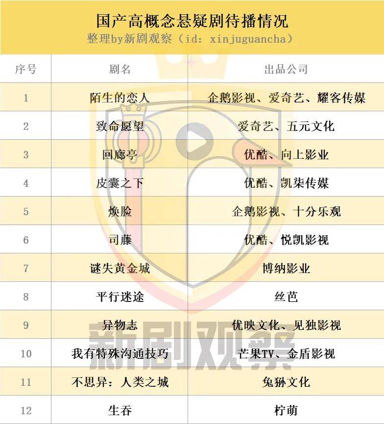 新剧观察整理了未播的“高概念”悬疑剧,如下表格: