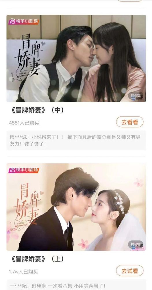 另一种超前加映、打包售出的方式则显得更加贴心、更得“民心”。米读创造出一套更加灵活的点播模式,米读短剧在第三集播出时超前上线五集,三元售出5集短剧的“打包价”,降低了准入门槛,人人皆可消费,更加贴近受众,这种模式的超前效果迅速反应在数据上,《冒牌娇妻》超过2.3万的购买人次已经成为了目前快手小剧场连载剧目中top级的付费人数。