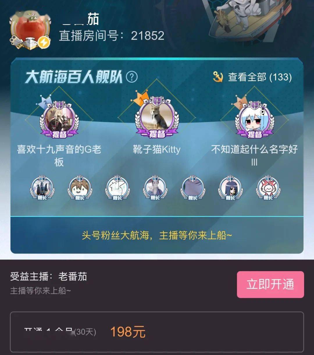 大航海分为舰长和提督,分别是198元/月和1998元月。