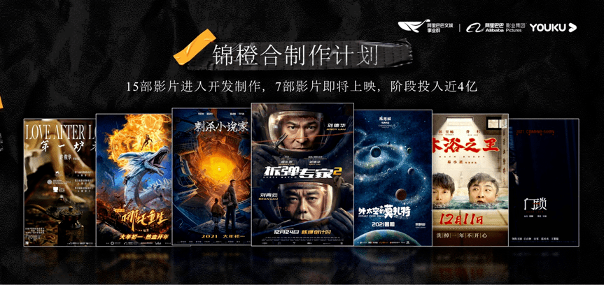 另一方面,平台在不断推出扶持计划时也十分注重迭代升级。如阿里文娱在 2018年就推出过之“锦橙合制计划”,这一计划则侧重于联合开发和全产业链合作,需要在5年内结合四大档期推出20部作品,今年陆续上映的作品就包括《拆弹专家2》《刺杀小说家》《第一炉香》等。在升级过程中,该计划也开始注重对故事的挖掘,如将联合淘宝“故事商店”、阿里公益发起“励志青春”故事征集,同时联合达摩院、书旗小说,发起“科学幻想”故事征集,发现属于中国的科幻故事,达到编导统一的效果。