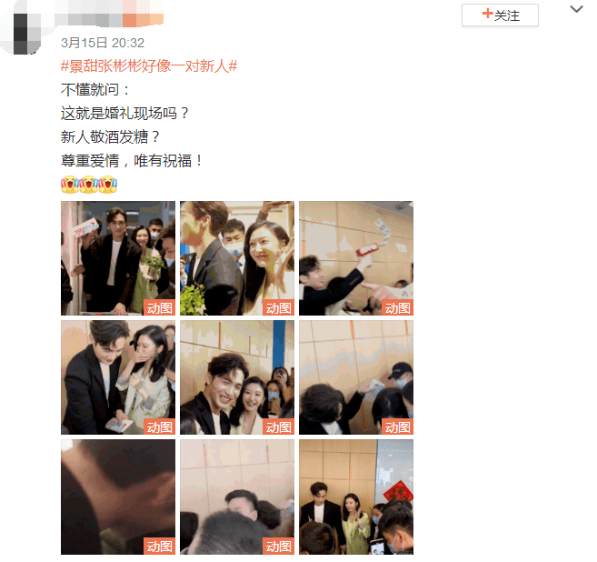现场人太多,张彬彬担心景甜被挤到,还绕到她身后护着她。
