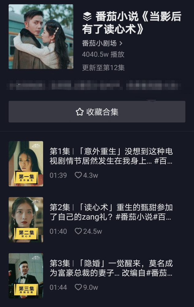 可以看到的是,从简单的土味段子,到集集都有小高潮的内容,微短剧的剧情正在进一步走向精细化,有了更多投资、更专业的演员与制作团队参与进来之后,微短剧也开始向精品化、专业化的方向迈进。