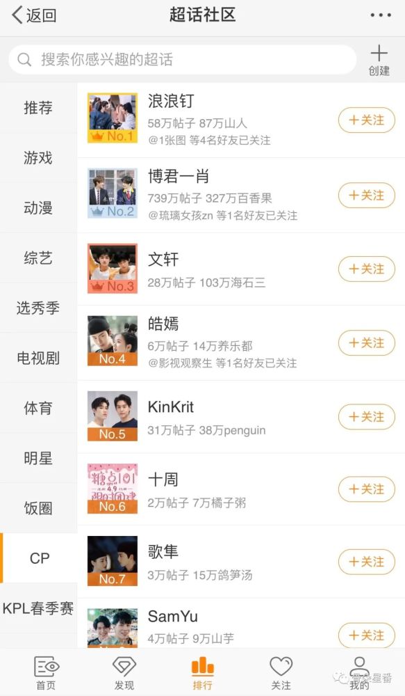 在微博超话区,《山河令》的浪浪钉、《长歌行》的皓嫣、歌隼、《司藤》的超甜冰淇淋分别位于cp榜的第1、第4、第7和第13位,可见最近几组cp粉的生产力之高。