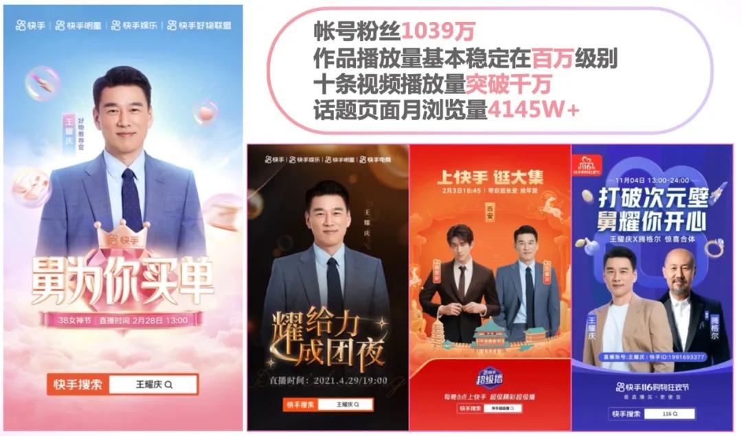 短视频+明星的商业营销空间就更大了。从热剧市场走出的王耀庆,在短视频上仿佛涅槃重生,从“霸道总裁”蜕变为“宠外甥女的舅舅”、“耀给力百货总裁”,其反差新人设助他二度走红。《报告》显示,王耀庆直播带货33场,其中4场直播达到千万级GMV,其去年的电商GMV成绩高达1.4亿+。