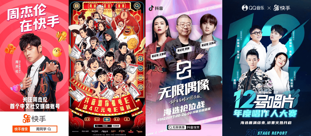 对B端来说,短视频平台已成娱乐营销线上主阵地。明星争先恐后入驻平台,做电影宣发的人手一个短视频号,剧集收官炒热度要找老铁们,上话题热榜是综艺出圈的第一步,音乐发行的终点是制造BGM神曲……