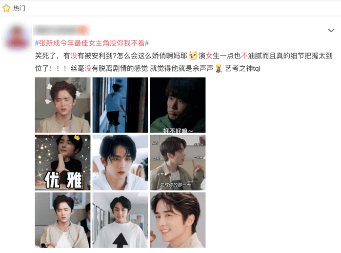 2021年可能是男明星“泥塑”(把男性偶像看作女性)元年,前有男爱豆的性转照片让人我见犹怜,后脚#张新成今年最佳女主角没你我不看#就风风火火登上热搜。