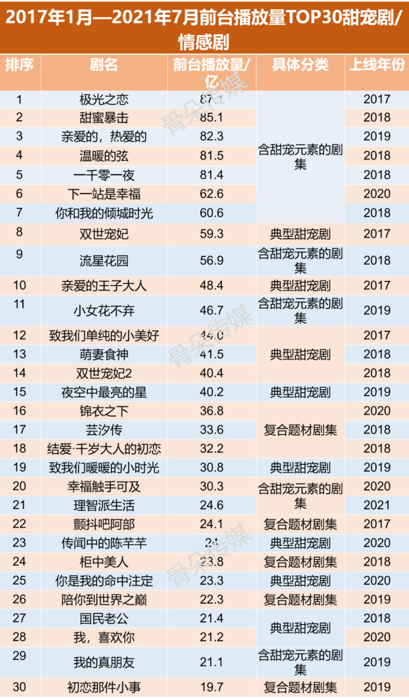骨朵数据通过盘点近5年甜宠剧的市场表现,从中管窥甜宠剧这一门类剧集易走红也易“翻车”的原因和发展前景。