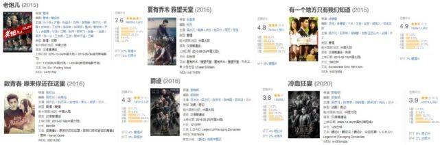 电影方面,吴亦凡主演的多部电影豆瓣评分均在5分以下,评分最高的《老炮儿》、《美人鱼》中,吴亦凡并非主角。