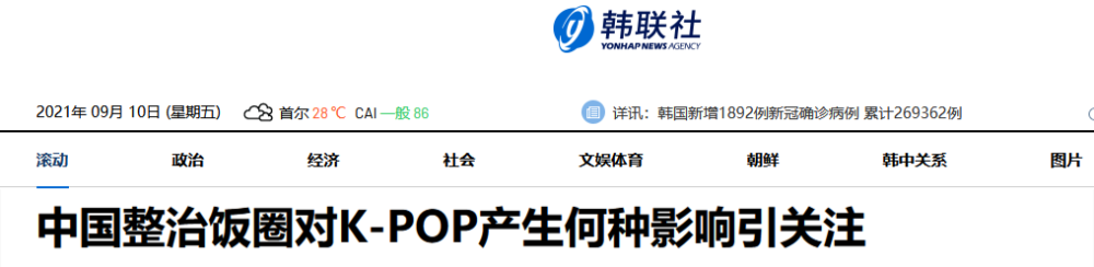随着中国近期重拳整治娱乐圈及“饭圈”乱象,韩国媒体开始担忧“韩流”(K-pop)未来在中国的发展。