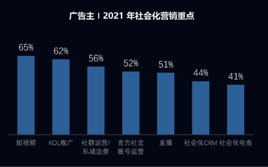 广告主2021年社会化营销重点(图片来源秒针系统)