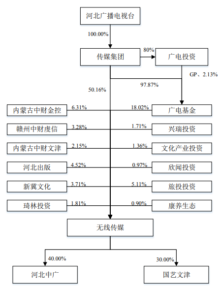 后几经股权变更,直到2020年6月5日,河北广播电视台召开党委会并作出决议,才同意广电有限变更为股份有限公司。目前,无线传媒的股权结构图如下: