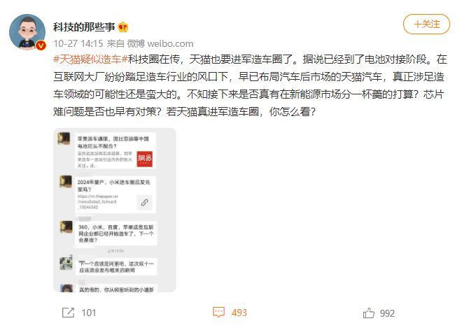 汽车只是阿里实体化的一部分。至于,车到底是天猫来造,还是阿里独立个新部门来造,就显得不是那么重要了。