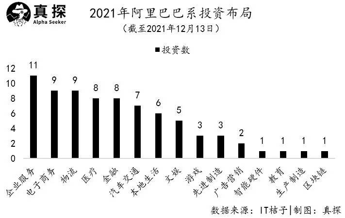 今年,阿里系投资出手最多的领域是企业服务,共计出手11次,紧随其后的是物流、电商领域各9次。在金融、医疗领域,阿里系投资各出手8次,在汽车交通领域则出手了7次。