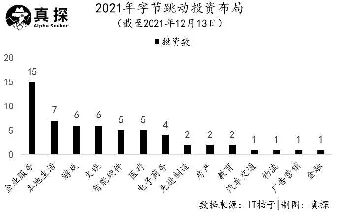 字节跳动的投资目的主要是补足公司缺乏的业务能力,其在2021年出手最多的领域是企业服务,共投资了15家公司。在企业服务领域,字节跳动在今年两次参投了由阿里前员工创办的AI数据中台奇点云,该企业今年总融资额近3亿元人民币。