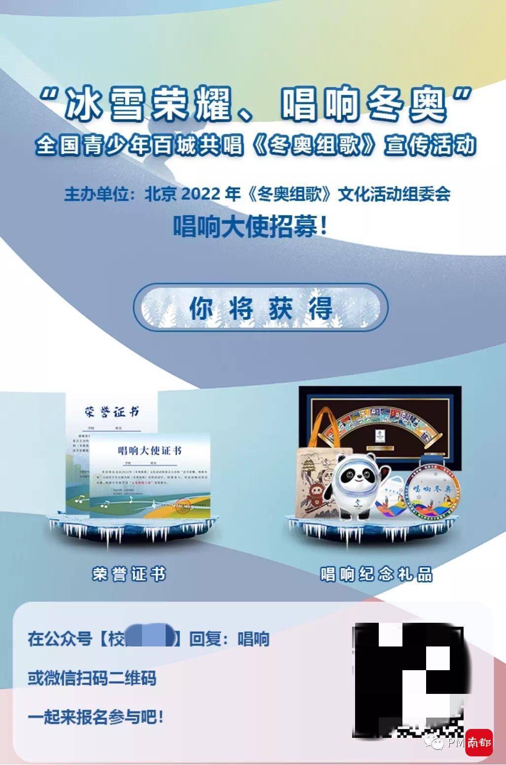 值得注意的是,据“四川在线”报道,“‘魅力冬奥’冬奥知识传播助力大使活动”的报名页面还曾贴出新活动“‘冰雪荣耀、唱响冬奥’全国青少年百城共唱《冬奥组歌》宣传活动”的报名链接。