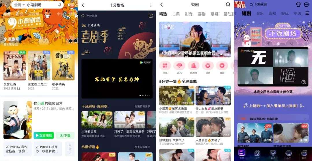 但随着短剧的热度不断提升,并逐渐脱离了简单的“土味”、“上头”逻辑,形成日渐成熟的产品赛道,长视频平台已经把短剧作为主站的关键内容组成之一,腾讯视频的“十分剧场”、爱奇艺的“小逗剧场”、优酷的“小剧场”和芒果TV的“下饭剧场”分别成为平台的主频道之一。