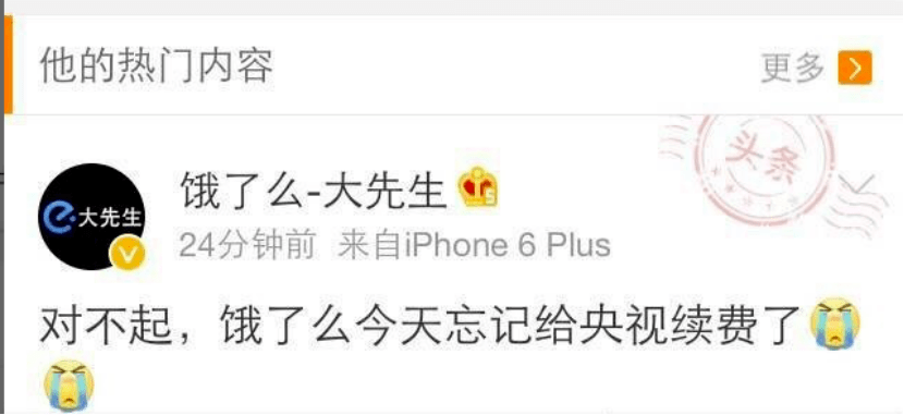当消费者都等待饿了么的回应时,戏剧性的一幕发生了,微博认证为“饿了么网上高级订餐市场经理”的“饿了么-大先生”发布微博,“对不起,饿了么今天忘记给央视续费了”。