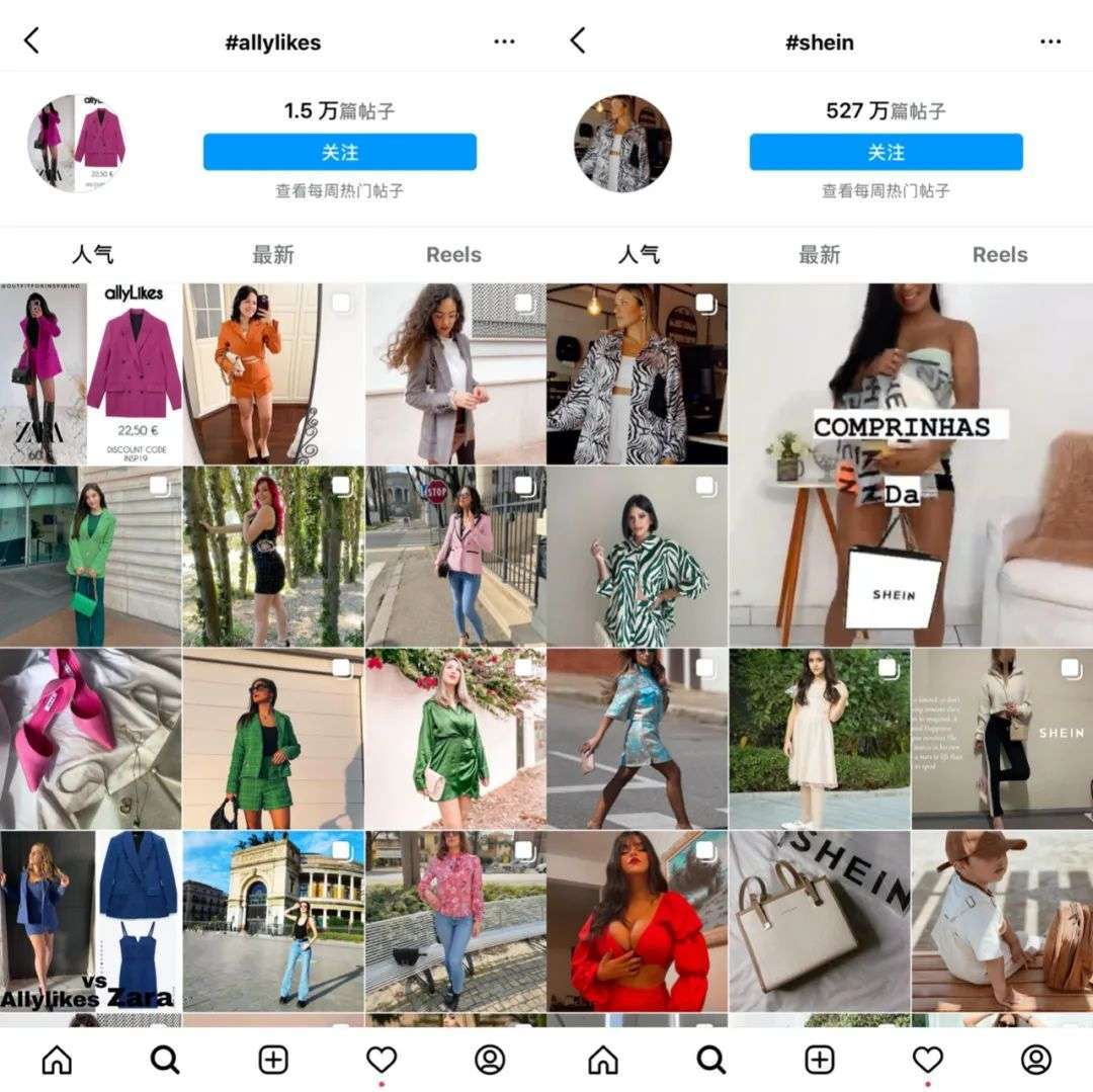 在投放上,SHEIN初期不愿意高价打广告,只找KOC。Instagram上带有SHEIN标签的近600万篇帖子中,晒出SHEIN穿搭的博主多为粉丝数1万左右的素人KOC。这一方法论被AllyLikes精准模仿。