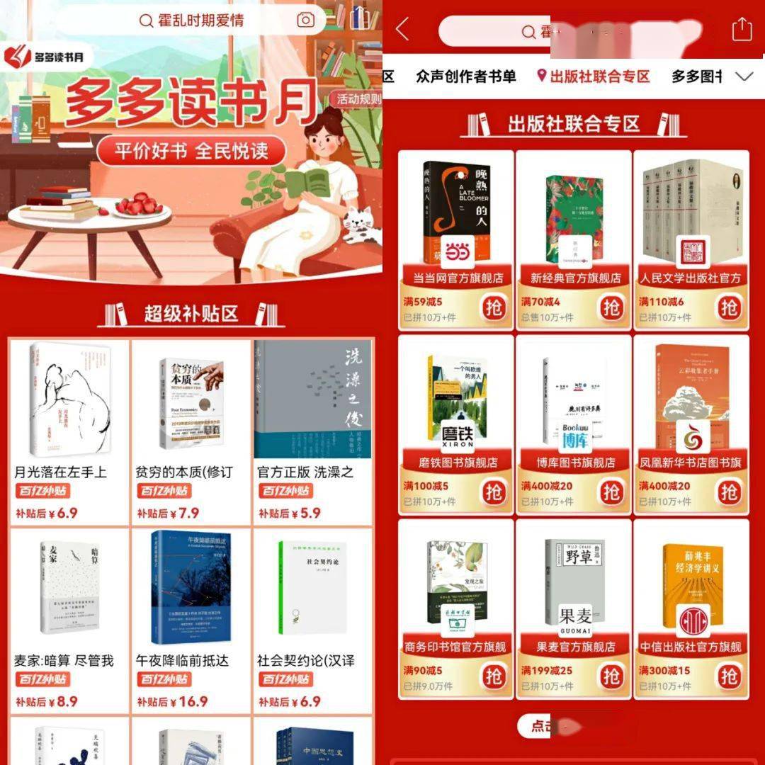 这一点也与多多在读书月开启百亿补贴活动的初心不谋而合。