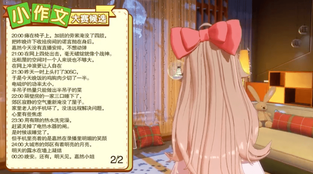 剧情发展到这里,黑粉放下偏见,路人粉开始念叨“想做嘉然小姐的狗”。嘉然此时趁热发出一篇真情实感小作文,道出打工人的辛酸,也说尽对支持者的感谢。这篇“社畜的告白”成了无数人梦开始的地方,至今仍是其吸粉的经典物料。