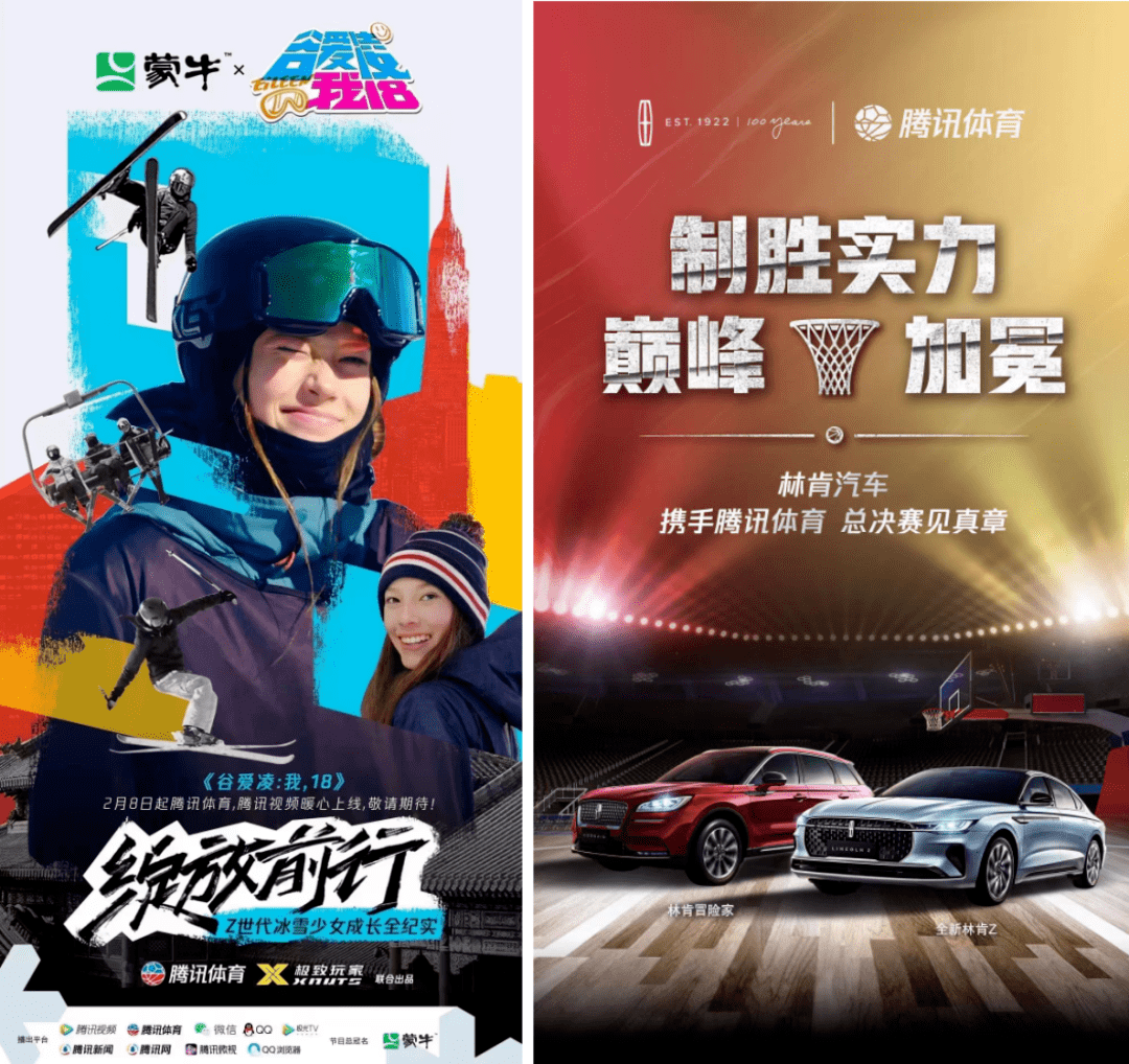 腾讯视频为蒙牛、林肯汽车等品牌定制营销方案,助其联动平台生态成势就是很好的例子。年初,腾讯体育与蒙牛携手出品的纪录片《谷爱凌:我,18》,在揭秘天才滑雪少女背后故事的同时,也把蒙牛「天生要强」的精神内核传递出来。而林肯汽车,基于腾讯体育NBA多年的合作口碑,也使其产品的知名度及销售转化得到进一步提升。
