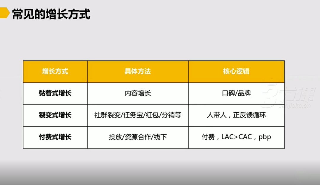 那么企业增长有哪些动力呢?我们在新媒体P2的课程中有讲过阿里克莱斯《精益创业》的3种增长动力: