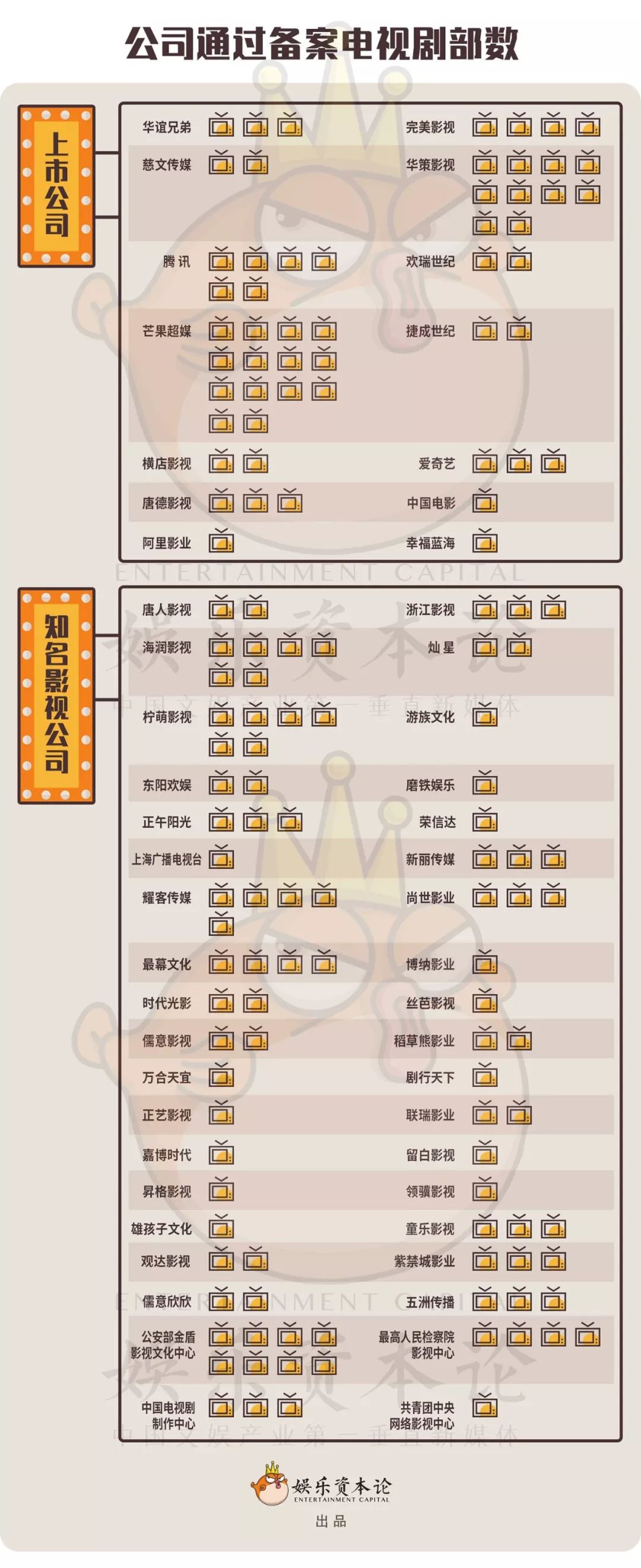 娱乐资本论(呕心沥血)整理出了2019年全年的电视剧备案,并以上市公司、未上市的知名头部电视剧公司,以及部分知名中小影视剧公司作为维度,对备案进一步梳理和解读。