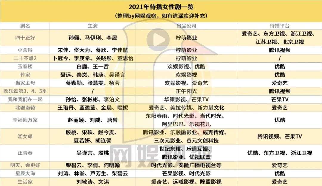网娱君梳理发现,2021年剧集方面较去年题材鲜少有创新,但数量上仍然保持在十部以上,内容在深耕女性题材方面更加深入,不少翻拍剧、剧N代待播。