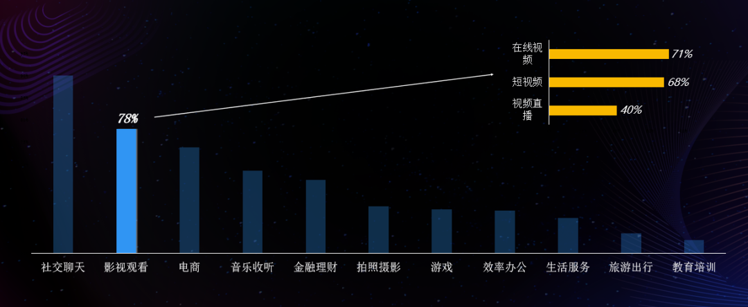 根据《报告》显示,在女性用户中,除社交类App以外,影视类App使用偏好度最高。而在类别上,在线视频软件用户占比最高,用户在这些平台上的内容消费也以剧集、电影和综艺为主,而具体到女性,女性向的剧集和综艺则占据主流。