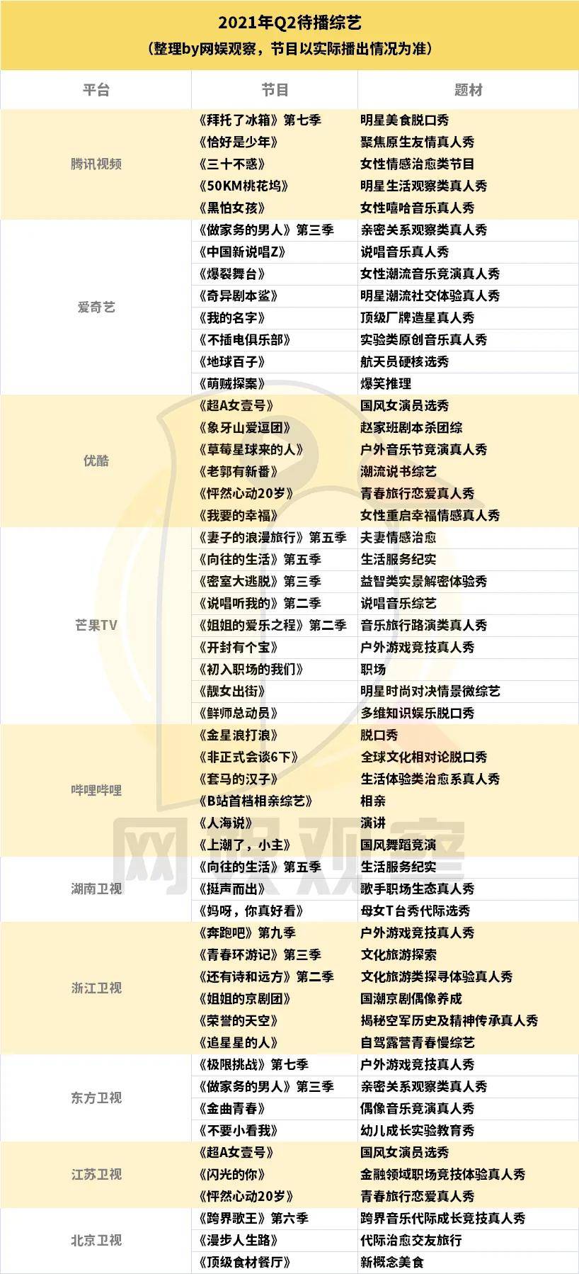 2021年,综艺出圈的难度进一步加剧,而Q2综艺片单也表明,各家平台仍然没有放弃探索。