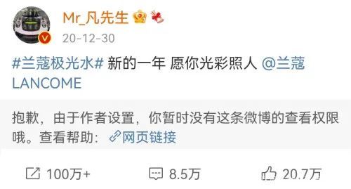 另外,查看吴亦凡本人微博状态,也有品牌陆续将之前的合作推广博设置权限,包括兰蔻、科颜氏、良品铺子、韩束在内的品牌已经隐藏了官宣吴亦凡代言的微博。