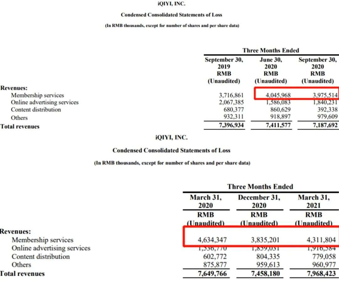 简单估算下,2018年Q1开始,每一个季度在会员服务收入这一项平均环比增长2亿左右,而到2020年Q1增长环比升至7.7亿,且在2020年全年会员服务收入负增长的情况下,2021年Q1增长4.6亿。