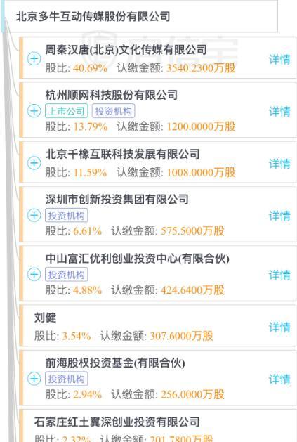 从启信宝的数据来看,人人公司子公司千橡网景是多牛互动的第三大股东,持股11.59%。