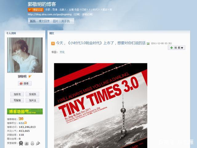 刚刚兴起的新浪博客,文艺大咖韩寒、郭敬明的博客可以说是人气非常的旺,然而他们的博客更新时间停留在几年前。