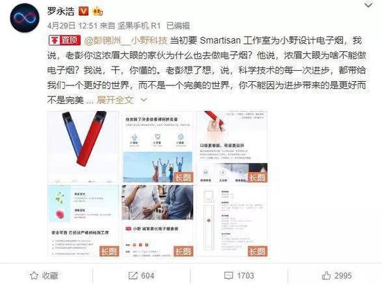 此后至今,罗永浩没有再举办锤子科技发布会,新项目小野电子烟的官宣也只是在微博上进行。