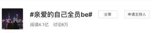 作为一部话题剧,它也被媒体誉为“住在热搜上”。虽然尚且没有精准统计其登上热搜的话题数量,但是李思雨、陈一鸣、王子鸣、张芝芝等无一不用事实证明了其话题号召力。目前剧集同名主话题#亲爱的自己#阅读量突破90亿,影响力不容小觑。除此之外,芒果TV作为独播网络平台也撬动了30亿播放量。