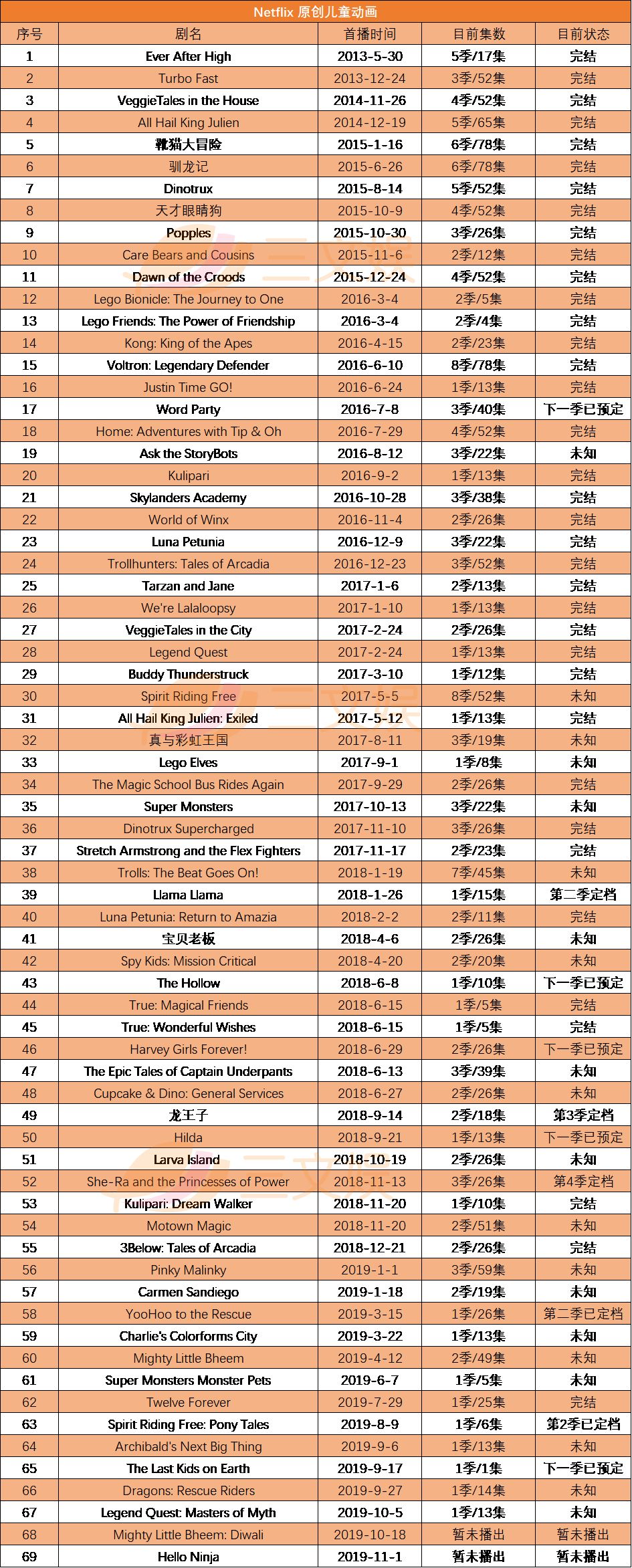 自2013年上线的第一部动画《Ever After High》开始,到今年11月份,Netflix总共上线95部原创动画片。