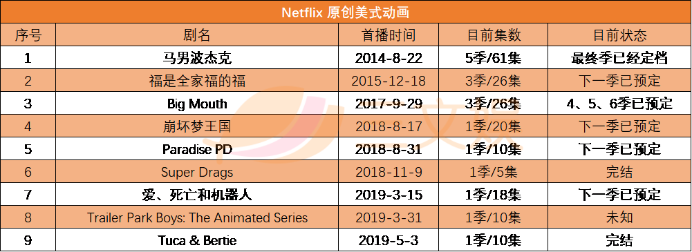 从上面几张表格中可以看出,Netflix在2016年以后加快了制作原创动画,尤其是儿童动画的脚步。过去,Netflix的原创内容一直以刺激大胆的电视剧著称,针对儿童的内容相对较少,通过大量制作动画内容,Netflix可以快速补齐这一短板。
