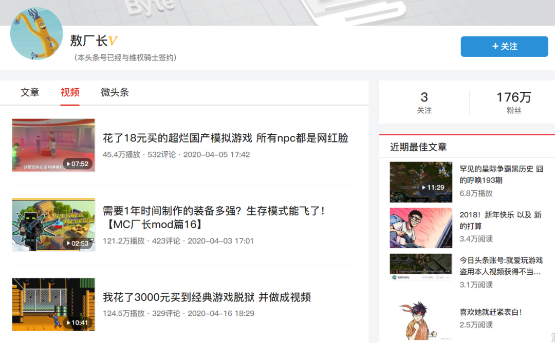去年年中,西瓜视频市场与娱乐中心总经理谢东升在接受采访时表示,西瓜视频的定位是PUGC视频平台。而根据36Kr报道,西瓜视频正在大力挖掘B站的up主,号称给出10-20倍的现金收益和更多流量扶持,已经有如敖厂长等老牌up主倒向了头条系。
