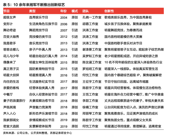 有投资机构表示,此次的《乘风破浪的姐姐》节目外壳虽是唱跳选秀,但精神内核却与早期甚至同期的选秀节目完全不同,是湘军的又一次自我创新。