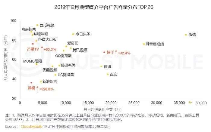 2019年典型媒介平台广告容量分部,图源QuestMobile