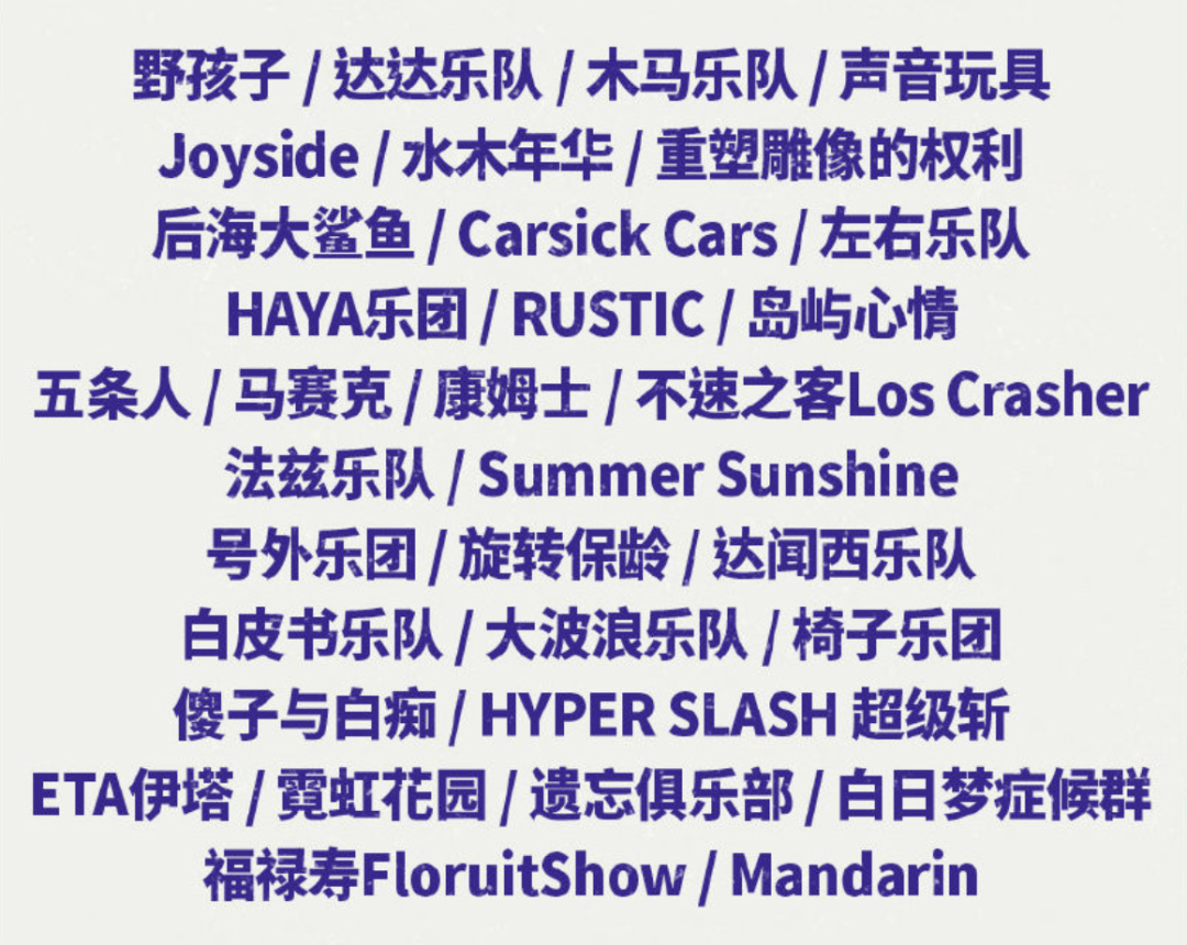 除了这四支诞生在00前的乐队,还有14位“00后”,像Joyside、重塑雕像的权利、后海大鲨鱼、Carsick Cars等乐队都不用过多介绍,他们已然是这些年来摇滚圈的中坚力量。