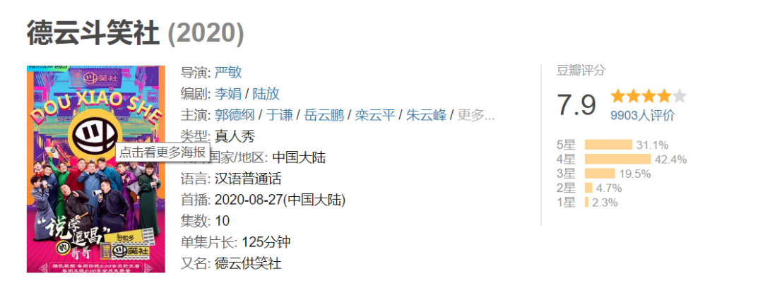 然而节目上线近一个月,《德云斗笑社》始终热而不爆,有热度却少热搜,豆瓣评分7.9却没有成为现象级产品。对于承担着人们诸多期待的德云社来说,这样的成绩少了些惊喜。