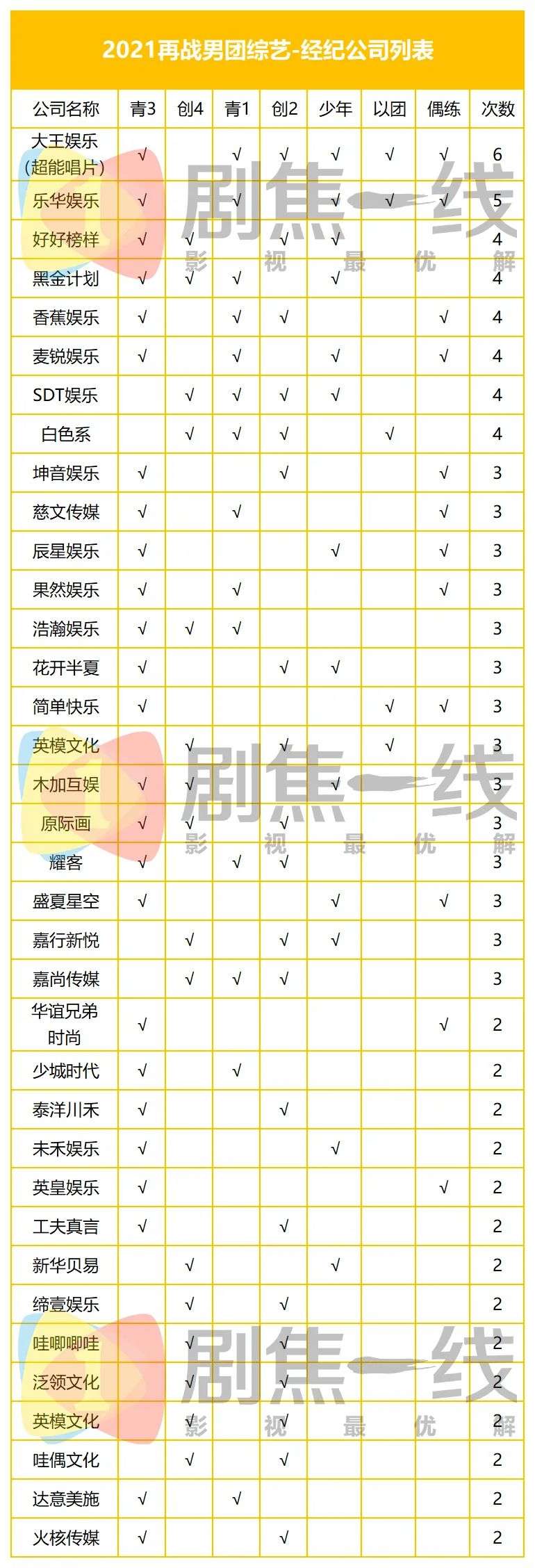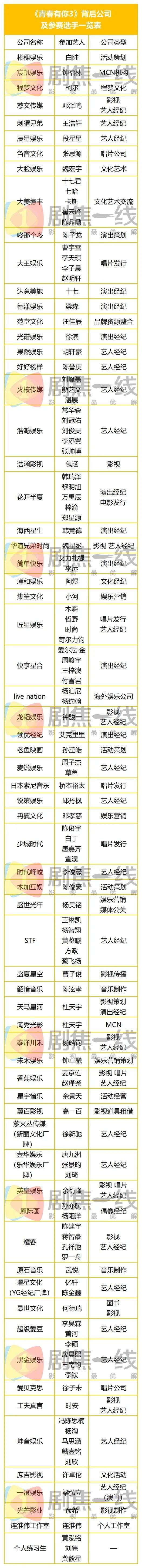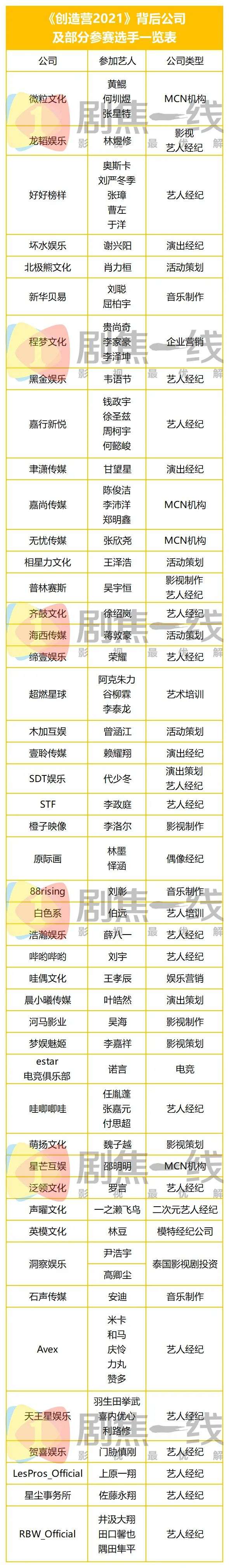 附《青春有你3》《创造营2021》公司及选手信息表: