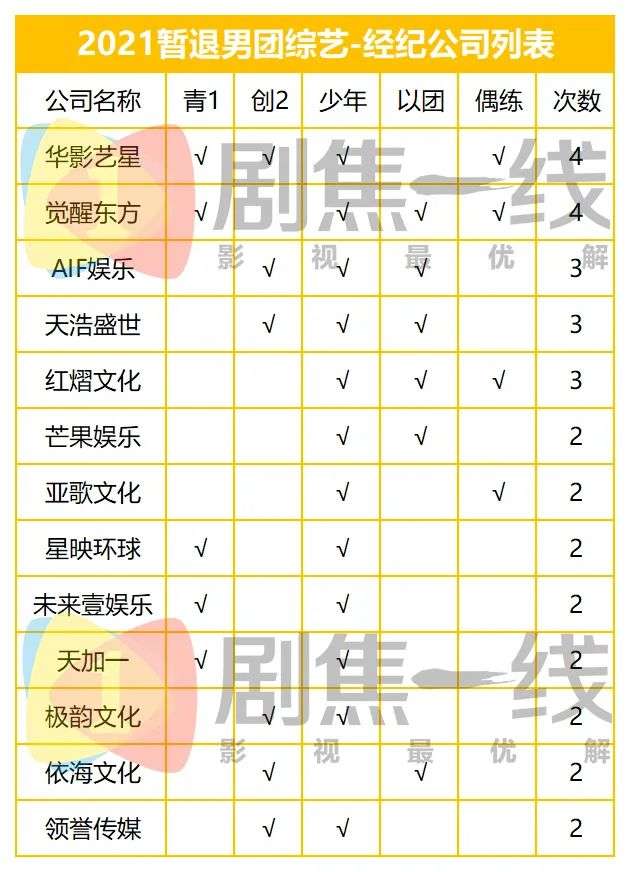 除此之外,赵薇控股的公司普林赛斯,出品过《天坑鹰猎》、《不完美的她》等剧集的光芒影业,由新丽文化成立的艺人经纪厂牌-萦火丛传媒等公司也在今年首次入局了男团综艺。“偶像赛道是打开市场认知度的捷径”再一次得到了有力的证明。