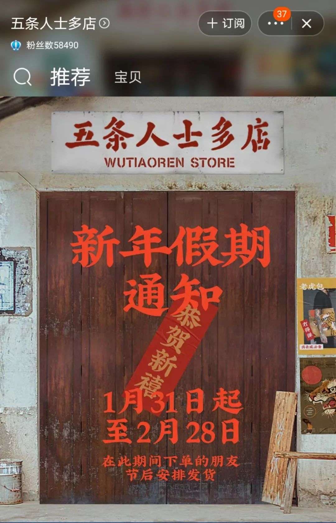 而他们的淘宝店“五条人士多店”,宣传海报干脆就是一张任何一个你在家门口都能看到的小卖部,然后贴上五条人的字样——这与他们粗糙简单粗暴的logo塑料袋和拖鞋相得益彰。