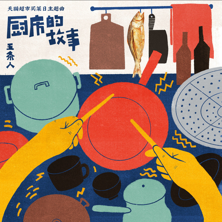 下沉的五条人给天猫超市写了一首歌《厨房的故事》,歌里就是他们的生活,充斥着朴素平凡的厨房主题,和天猫超市十分契合。