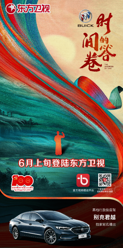另外,还有像东方卫视《时间的答卷》,获得了别克君越的独家冠名,而该品牌所主打的定位便就是高档行政级座驾,这与献礼节目的气质不谋而合。