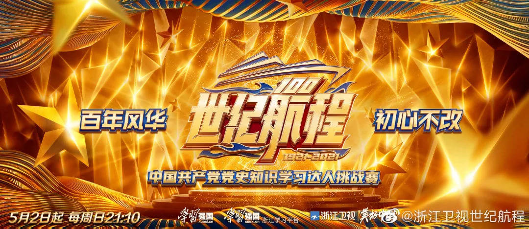 其次,献礼节目中不乏有益智答题类节目。浙江卫视推出了融媒体互动益智节目《世纪航程》,别名中国共产党党史知识学习达人挑战赛,邀请了在学习强国上的积分达人,通过6轮不同形式的中国共产党历史知识比拼挑战,最终评选出一位冠军。
